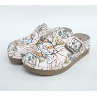 Saboti medicali cu flori, din piele, neperforati, cu gel pe talpa 154247
