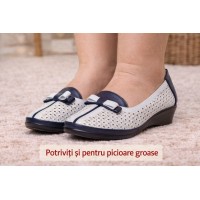 Pantofi office albi peforati cu platforma, piele moale (cod 028735)