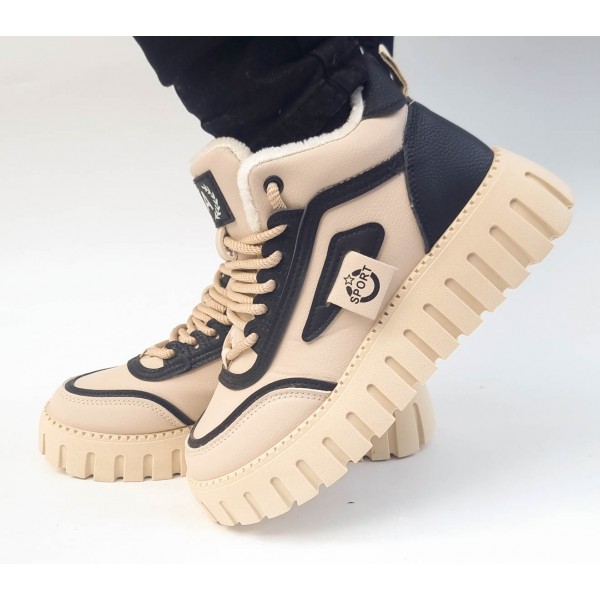 Ghete piele imblanite negru bej model W586051
