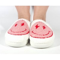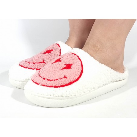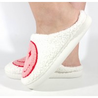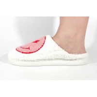 Papuci de casa crem cu rosu, veseli, usori, caldurosi - model 106352