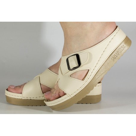 Design Impecabil în Crem: Acești saboți, cu un design elegant în crem, adaugă o notă de profesionalism și rafinament uniformei tale.